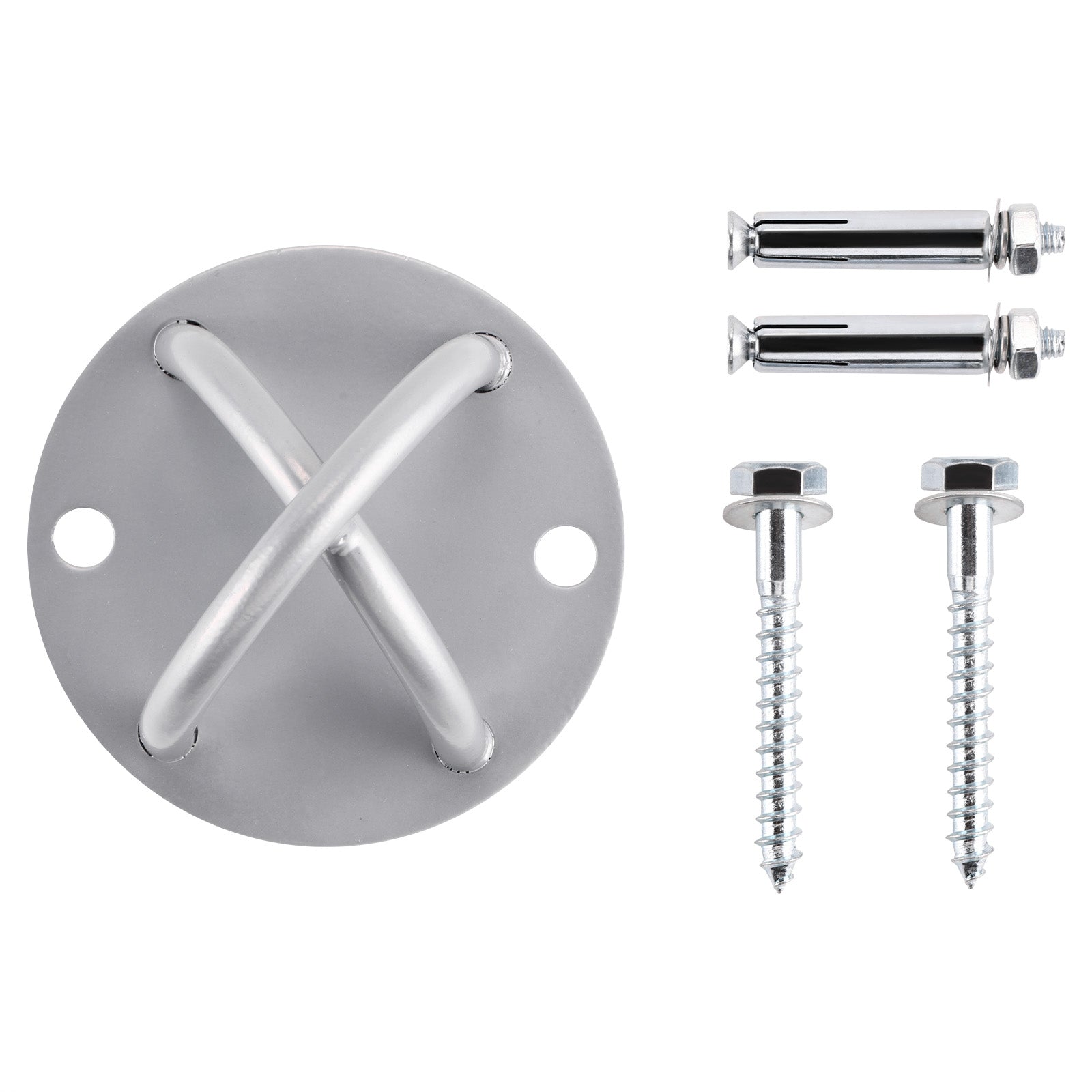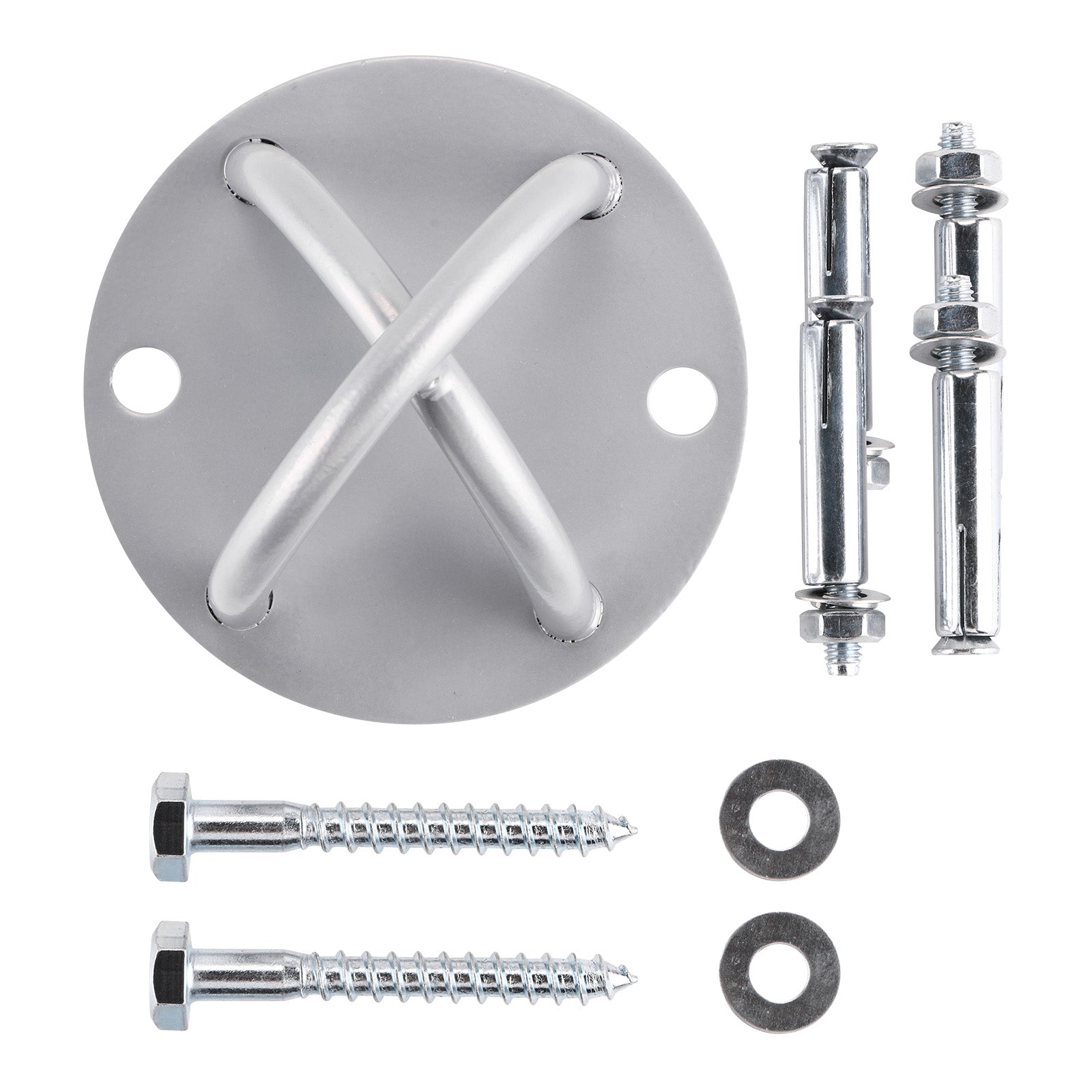 Incluye tornillos de anclaje y arandelas para una instalación rápida y sencilla en superficies como concreto o madera, proporcionando una base sólida para cualquier rutina de entrenamiento. Ideal para ejercicios de fuerza, resistencia y equilibrio, este anclaje es compatible con todo tipo de correas de suspensión, convirtiéndose en una herramienta esencial para optimizar el espacio de entrenamiento y aprovechar al máximo las ventajas del TRX.