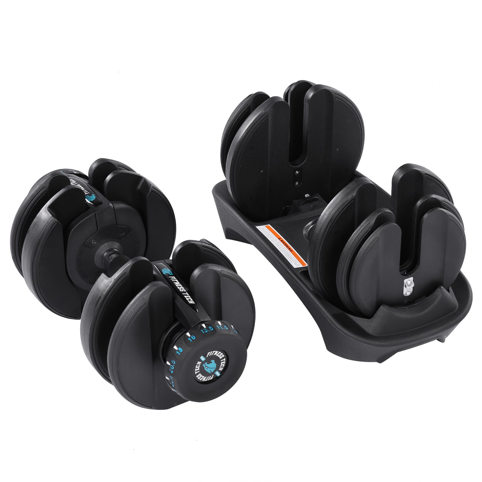 Cada mancuerna incluye 10 discos, con un peso mínimo de 2,5 kg y un peso máximo de 24 kg por unidad.