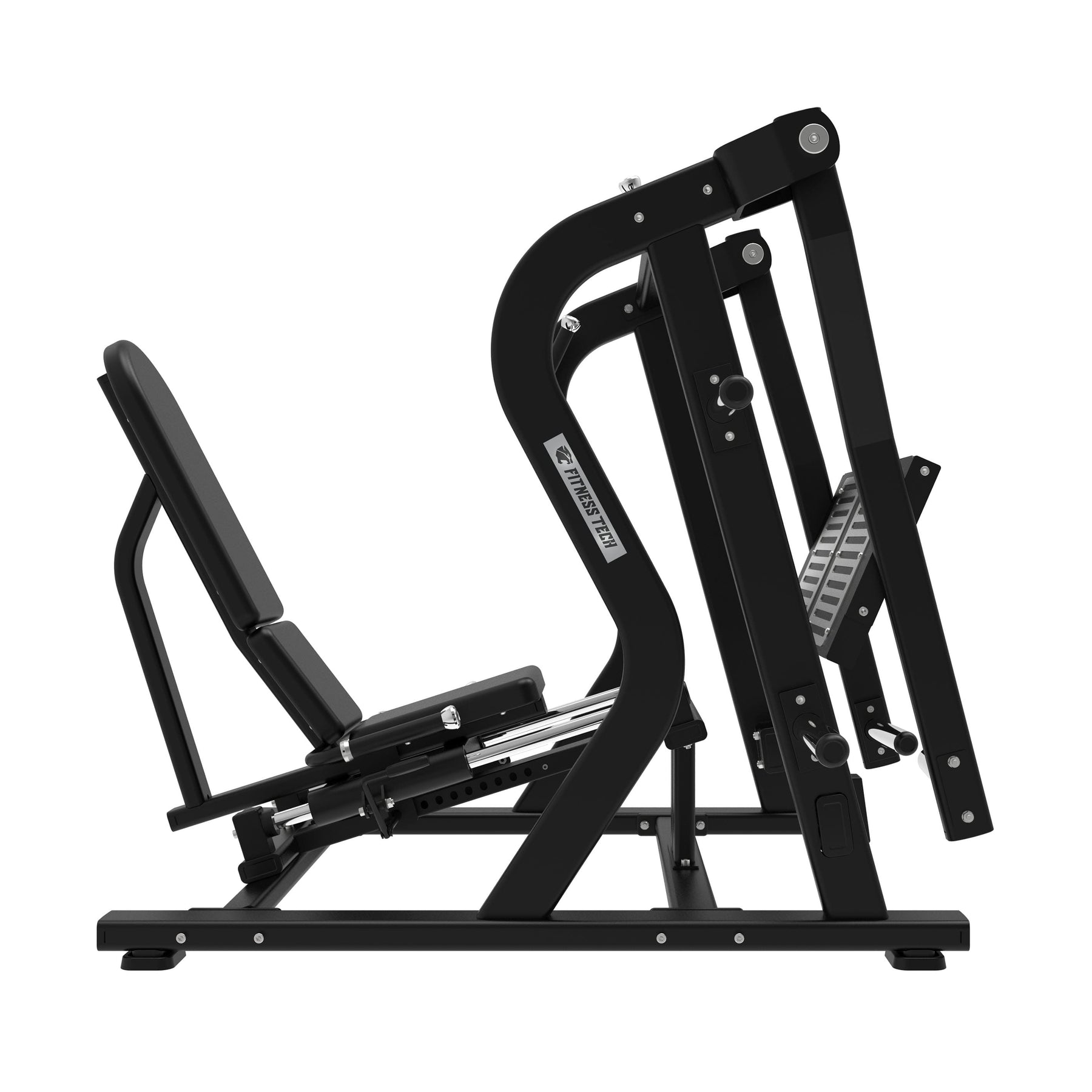 La Prensa de Piernas Horizontal de Fitness Tech está diseñada para ofrecer un movimiento suave, natural y biomecánicamente preciso. Su diseño compacto y estable permite desarrollar los músculos del tren inferior con total seguridad, ofreciendo una trayectoria horizontal que reduce la presión en la zona lumbar y mejora la postura durante todo el ejercicio.